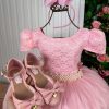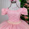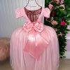 Confeccionado em tecido misto possui forro em poliéster e algodão para não incomodar a criança e proporcionando um caimento incrível e sofisticado, possui gola redonda, comprimento médio, mangas curtas, contém, também, elástico nas costas para melhor ajuste, acabamento com lindo laço na parte posterior do vestido completa o look dos sonhos!