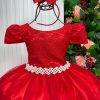 Confeccionado em tecido misto possui forro em poliéster e algodão para não incomodar a criança e proporcionando um caimento incrível e sofisticado, possui gola redonda, comprimento médio, mangas curtas, contém, também, elástico nas costas para melhor ajuste, acabamento com lindo laço na parte posterior do vestido completa o look dos sonhos!