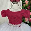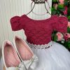 Confeccionado em tecido misto possui forro em poliéster e algodão para não incomodar a criança e proporcionando um caimento incrível e sofisticado, possui gola redonda, comprimento médio, mangas curtas,  contém, também, elástico nas costas para melhor ajuste, acabamento com lindo laço na parte posterior do vestido completa o look dos sonhos!