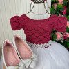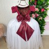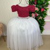 Essa coleção foi criada para transformar cada momento especial em um verdadeiro conto de fadas. Os vestidos combinam a intensidade do marsala com a pureza e delicadeza do branco neve, resultando em peças que esbanjam charme, romantismo e sofisticação. Detalhes do Vestido Corpo em renda marsala com mangas curtas, trazendo um ar clássico e elegante. Saia ampla em camadas de tule branco, que garante volume e movimento delicado. Cintura marcada com cinto em pérolas, acrescentando brilho e sofisticação. Tecido 100% poliester.Perfeita para: Festas de fim de ano (Natal e Réveillon); Batizados e celebrações religiosas; Aniversários temáticos; Ensaios fotográficos e ocasiões especiais. Uma coleção que une tradição e delicadeza, ideal para quem busca um visual atemporal, romântico e inesquecível para as pequenas princesas. Informações Importantes As medidas podem variar em até 2cm. Recomendamos sempre consultar a tabela de medidas antes da compra para evitar erros. Para um volume extra, indicamos o uso de saiote de armação, vendido separadamente na categoria Acessórios. Tiara e outros acessórios não acompanham o produto, mas estão disponíveis em nosso site. Calçado vendido separadamente, disponível na categoria Calçados As cores do produto podem sofrer variações de tonalidade conforme a configuração da tela do seu dispositivo.