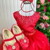 Confeccionado em tecido misto possui forro em poliéster e algodão para não incomodar a criança e proporcionando um caimento incrível e sofisticado, possui gola redonda, comprimento médio, mangas curtas, contém, também, elástico nas costas para melhor ajuste, acabamento com lindo laço na parte posterior do vestido completa o look dos sonhos!