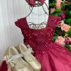 Confeccionado em tecido misto possui forro em poliéster e algodão para não incomodar a criança e proporcionando um caimento incrível e sofisticado, possui gola redonda, comprimento médio, mangas curtas, possui elástico nas costas para melhor ajuste, e acabamento com lindo laço na parte posterior do vestido completa o look dos sonhos!