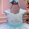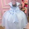 Confeccionado em tecido misto possui forro em poliéster e algodão para não incomodar a criança e proporcionando um caimento incrível e sofisticado, possui gola redonda, comprimento médio, mangas curtas, possui elástico nas costas para melhor ajuste, e acabamento com lindo laço na parte posterior do vestido completa o look dos sonhos!
