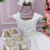 TECIDO TECNOSPORT 100% POLIESTER/ BABADOS TULE 100% POLIAMIDA/ FORRO 100% POLIESTERConfeccionado em tecido misto possui forro em poliéster e algodão para não incomodar a criança e proporcionando um caimento incrível e sofisticado, possui gola redonda, comprimento médio, mangas curtas, possui elástico nas costas para melhor ajuste, e acabamento com lindo laço na parte posterior do vestido completa o look dos sonhos!     BATIZADO,DAMINHA,CASAMENTO,NOIVA,NOIVINHA,DAMA DE HONRA,FLORISTA,DAMA     * Medidas podem variar em até 4cm * Caso queira o vestido mais armado, recomendamos o uso do saiote ou anágua de armação, disponível no nosso site na categoria acessórios. * Tiara vendida separadamente, disponível em nosso site na categoria acessórios. * Calçados vendido separadamente, disponível em nosso site na categoria calçados. * LEMBRANDO QUE PODERA HAVER VARIAÇÃO DE TONALIDADE DO PRODUTO DEPENDENDO DA TELA DO SEU DISPOSITIVO