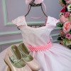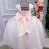 Confeccionado em tecido misto possui forro em poliéster e algodão para não incomodar a criança e proporcionando um caimento incrível e sofisticado, possui gola redonda, comprimento médio, mangas curtas, possui elástico nas costas para melhor ajuste, e acabamento com lindo laço na parte posterior do vestido completa o look dos sonhos!