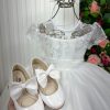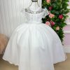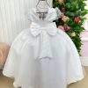 Confeccionado em tecido misto possui forro em poliéster e algodão para não incomodar a criança e proporcionando um caimento incrível e sofisticado, possui gola redonda, comprimento médio, mangas curtas, possui elástico nas costas para melhor ajuste, e acabamento com lindo laço na parte posterior do vestido completa o look dos sonhos!