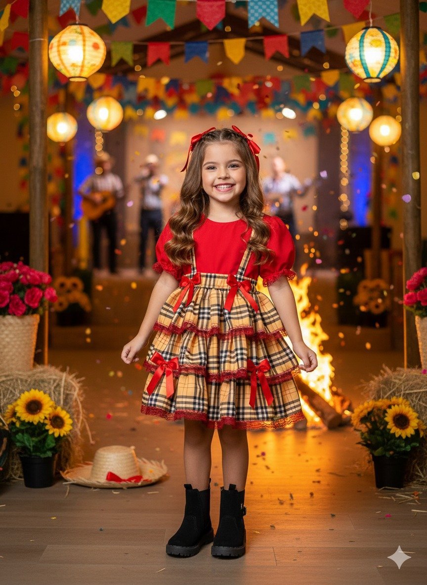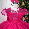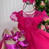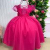 Confeccionado em tecido misto possui forro em poliéster e algodão para não incomodar a criança e proporcionando um caimento incrível e sofisticado, possui gola redonda, comprimento médio, mangas curtas, possui elástico nas costas para melhor ajuste, e acabamento com lindo laço na parte posterior do vestido completa o look dos sonhos!
