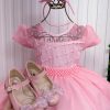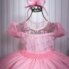 Confeccionado em tecido misto possui forro em poliéster e algodão para não incomodar a criança e proporcionando um caimento incrível e sofisticado, possui gola redonda, comprimento médio, mangas curtas, possui elástico nas costas para melhor ajuste, e acabamento com lindo laço na parte posterior do vestido completa o look dos sonhos!