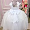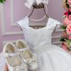 Confeccionado em tecido misto possui forro em poliéster e algodão para não incomodar a criança e proporcionando um caimento incrível e sofisticado, possui gola redonda, comprimento médio, mangas curtas, possui elástico nas costas para melhor ajuste, e acabamento com lindo laço na parte posterior do vestido completa o look dos sonhos!