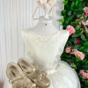 Confeccionado em tecido misto possui forro em poliéster e algodão para não incomodar a criança e proporcionando um caimento incrível e sofisticado, possui gola redonda, comprimento médio, mangas curtas, contém, também, elástico nas costas para melhor ajuste, acabamento com lindo laço na parte posterior do vestido completa o look dos sonhos!