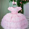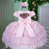 Vestido Infantil Menina Bonita 4 Saias Rosa Bebe