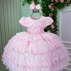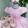 Confeccionado em tecido misto possui forro em poliéster e algodão para não incomodar a criança e proporcionando um caimento incrível e sofisticado, possui gola redonda, comprimento médio, mangas curtas, possui elástico nas costas para melhor ajuste, acabamento com lindo laço na parte posterior do vestido completa o look dos sonhos!