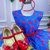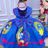 Confeccionado em tecido misto possui forro em poliéster e algodão para não machucar a criança e proporcionando um caimento incrível e sofisticado, possui gola redonda, comprimento médio, mangas curtas, possui elástico nas costas para melhor ajuste, acabamento com lindo laço na parte posterior do vestido completa o look dos sonhos!