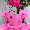 Confeccionado em tecido misto possui forro em poliéster e algodão para não incomodar a criança e proporcionando um caimento incrível e sofisticado, possui comprimento médio,sem mangas,possui elástico nas costas para melhor ajuste, alças de amarrar completa o look dos sonhos!