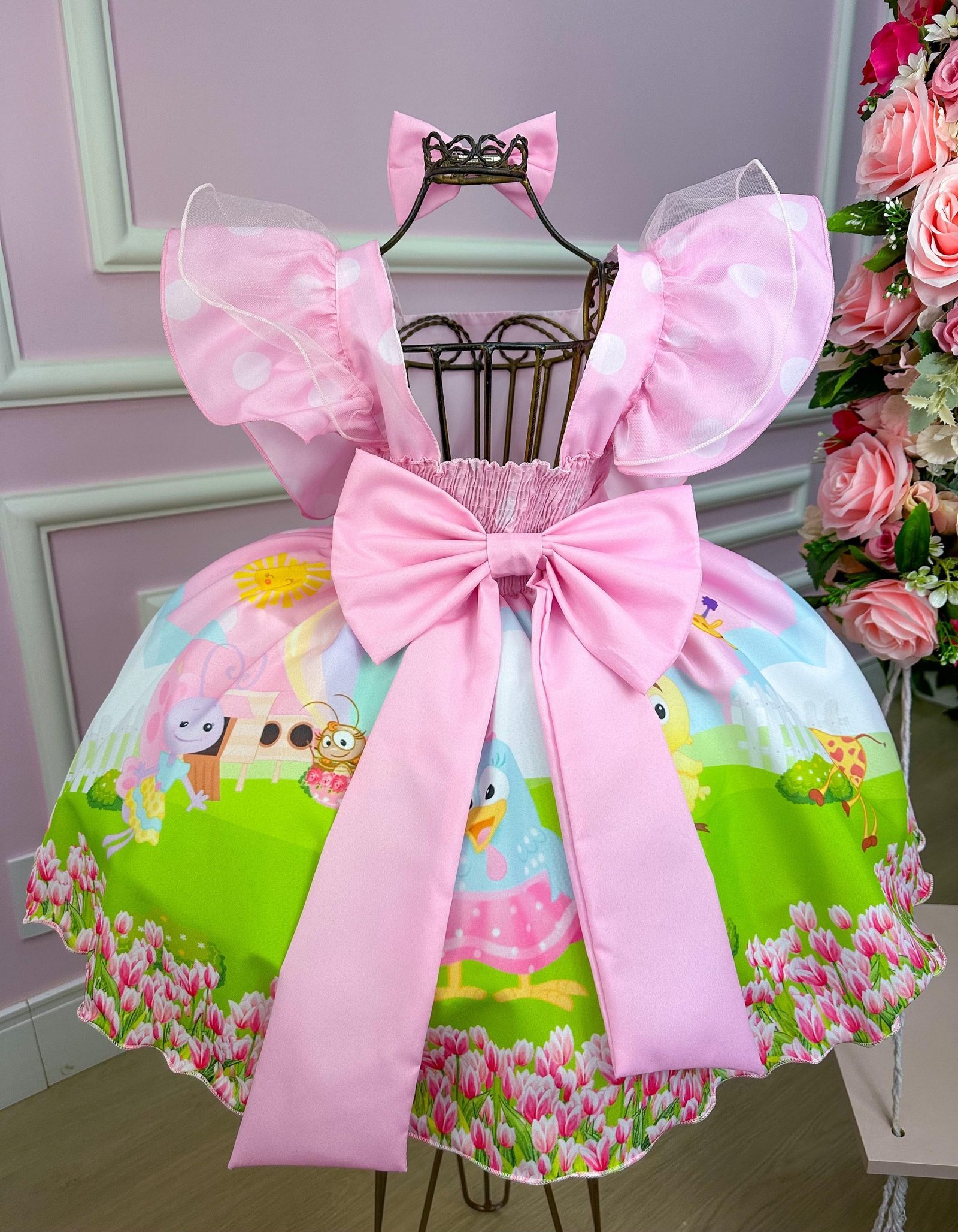 Confeccionado em tecido misto possui forro em poliéster e algodão para não incomodar a criança e proporcionando um caimento incrível e sofisticado, possui gola redonda, comprimento médio, mangas curtas, possui elástico nas costas para melhor ajuste, acabamento com lindo laço na parte posterior do vestido completa o look dos sonhos!