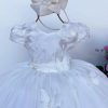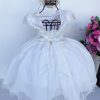 Confeccionado em tecido misto possui forro em poliéster e algodão para não machucar a criança e proporcionando um caimento incrível e sofisticado, possui gola redonda, comprimento médio, mangas curtas, possui elástico nas costas para melhor ajuste, acabamento com lindo laço na parte posterior do vestido completa o look dos sonhos!
