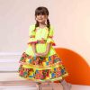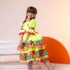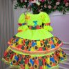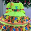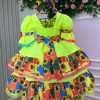 Confeccionado em tecido misto possui forro em poliéster e algodão para não incomodar a criança e proporcionando um caimento incrível e sofisticado, possui gola redonda, comprimento médio, mangas curtas, possui elástico na cintura para melhor ajuste e blusinha com elástico nas costas para ajustar a parte posterior do conjunto completando o look dos sonhos!