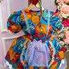 Confeccionado em tecido chita proporcionando um caimento incrível e sofisticado, possui gola redonda, comprimento médio, mangas curtas, acabamento com lindo laço na parte posterior do vestido completa o look dos sonhos.