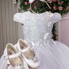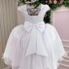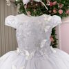 Confeccionado em tecido misto possui forro em poliéster e algodão para não incomodar a criança e proporcionando um caimento incrível e sofisticado, possui gola redonda, comprimento médio, mangas curtas, possui elástico nas costas para melhor ajuste, acabamento com lindo laço na parte posterior do vestido completa o look dos sonhos!