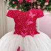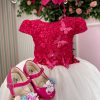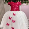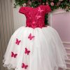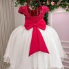Confeccionado em tecido misto possui forro em poliéster e algodão para não incomodar a criança e proporcionando um caimento incrível e sofisticado, possui gola redonda, comprimento médio, mangas curtas, possui elástico nas costas para melhor ajuste, acabamento com lindo laço na parte posterior do vestido completa o look dos sonhos!