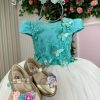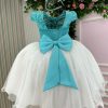 Confeccionado em tecido misto possui forro em poliéster e algodão para não incomodar a criança e proporcionando um caimento incrível e sofisticado, possui gola redonda, comprimento médio, mangas curtas, possui elástico nas costas para melhor ajuste, acabamento com lindo laço na parte posterior do vestido completa o look dos sonhos!