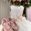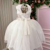 Confeccionado em tecido misto possui forro em poliéster e algodão para não incomodar a criança e proporcionando um caimento incrível e sofisticado, possui gola redonda, comprimento médio, mangas curtas, possui elástico nas costas para melhor ajuste, acabamento com lindo laço na parte posterior do vestido completa o look dos sonhos!