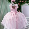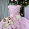 Confeccionado em tecido misto possui forro em poliéster e algodão para não incomodar a criança e proporcionando um caimento incrível e sofisticado, possui gola redonda, comprimento médio, mangas curtas, possui elástico nas costas para melhor ajuste, acabamento com lindo laço na parte posterior do vestido completa o look dos sonhos!