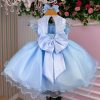 Confeccionado em tecido misto possui forro em poliéster e algodão para não incomodar a criança e proporcionando um caimento incrível e sofisticado, possui gola redonda, comprimento médio, mangas curtas, possui elástico nas costas para melhor ajuste, acabamento com lindo laço na parte posterior do vestido completa o look dos sonhos!