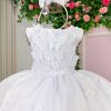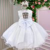 Confeccionado em tecido misto possui forro em poliéster e algodão para não incomodar a criança e proporcionando um caimento incrível e sofisticado, possui gola redonda, comprimento médio, mangas curtas, possui elástico nas costas para melhor ajuste, acabamento com lindo laço na parte posterior do vestido completa o look dos sonhos!