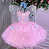Confeccionado em tecido misto possui forro em poliéster e algodão para não incomodar a criança e proporcionando um caimento incrível e sofisticado, possui gola redonda, comprimento médio, mangas curtas, possui elástico nas costas para melhor ajuste, acabamento com lindo laço na parte posterior do vestido completa o look dos sonhos!