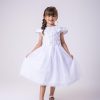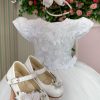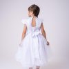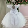 Confeccionado em tecido misto possui forro em poliéster e algodão para não incomodar a criança e proporcionando um caimento incrível e sofisticado, possui gola redonda, comprimento médio, mangas curtas, possui elástico nas costas para melhor ajuste, acabamento com lindo laço na parte posterior do vestido completa o look dos sonhos!
