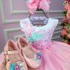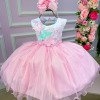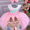 Confeccionado em tecido misto possui forro em poliéster e algodão para não incomodar a criança e proporcionando um caimento incrível e sofisticado, possui gola redonda, comprimento médio, mangas curtas, possui elástico nas costas para melhor ajuste, acabamento com lindo laço na parte posterior do vestido completa o look dos sonhos! * Medidas podem variar em até 4cm * Caso queira o vestido mais armado, recomendamos o uso do saiote ou anágua de armação, disponível no nosso site na categoria acessórios. * Tiara vendida separadamente, disponível em nosso site na categoria acessórios.* OBS: ASA VENDIDA SEPARADAMENTE