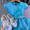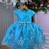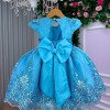 Confeccionado em tecido misto possui forro em poliéster e algodão para não incomodar a criança e proporcionando um caimento incrível e sofisticado, possui gola redonda, comprimento médio, mangas curtas, possui elástico nas costas para melhor ajuste, todo com glitter e acabamento com lindo laço na parte posterior do vestido completa o look dos sonhos!