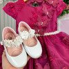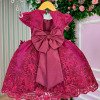 Confeccionado em tecido misto possui forro em poliéster e algodão para não incomodar a criança e proporcionando um caimento incrível e sofisticado, possui gola redonda, comprimento médio, mangas curtas, possui elástico nas costas para melhor ajuste, acabamento com lindo laço na parte posterior do vestido completa o look dos sonhos! A RENDA PODE VARIAR DE ACORDO COM O LOTE! * Medidas podem variar em até 4cm * Caso queira o vestido mais armado, recomendamos o uso do saiote ou anágua de armação, disponível no nosso site na categoria acessórios. * Tiara vendida separadamente, disponível em nosso site na categoria acessórios. * Calçados vendido separadamente, disponível em nosso site na categoria calçados. * LEMBRANDO QUE PODERA HAVER VARIAÇÃO DE TONALIDADE DO PRODUTO DEPENDENDO DA TELA DO SEU DISPOSITIVO