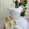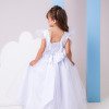Confeccionado em tecido misto possui forro em poliéster e algodão para não incomodar a criança e proporcionando um caimento incrível e sofisticado, possui gola redonda,renda de flores e apliques de strass no peito, comprimento médio, mangas curtas, possui elástico nas costas para melhor ajuste, acabamento com lindo laço na parte posterior do vestido completa o look dos sonhos!