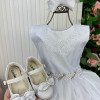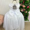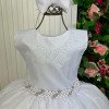 Confeccionado em tecido misto possui forro em poliéster e algodão para não incomodar a criança e proporcionando um caimento incrível e sofisticado, possui gola redonda,renda de flores e apliques de strass no peito, comprimento médio, mangas curtas, possui elástico nas costas para melhor ajuste, acabamento com lindo laço na parte posterior do vestido completa o look dos sonhos!