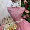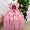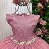 Confeccionado em tecido misto possui forro em poliéster e algodão para não incomodar a criança e proporcionando um caimento incrível e sofisticado, possui gola redonda,renda de flores e apliques de strass no peito, comprimento médio, mangas curtas, possui elástico nas costas para melhor ajuste, acabamento com lindo laço na parte posterior do vestido completa o look dos sonhos!