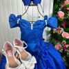 Vestido Marie Longo Manga Princesa Azul Royal