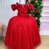 Confeccionado em tecido misto possui forro em poliéster e algodão para não incomodar a criança e proporcionando um caimento incrível e sofisticado, possui gola redonda, comprimento médio, mangas curtas, possui elástico nas costas para melhor ajuste, acabamento com lindo laço na parte posterior do vestido completa o look dos sonhos!