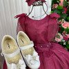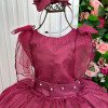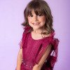 Confeccionado em tecido misto possui forro em poliéster e algodão para não incomodar a criança e proporcionando um caimento incrível e sofisticado, possui gola redonda,renda de flores e apliques de strass no peito, comprimento médio, mangas curtas, possui elástico nas costas para melhor ajuste, acabamento com lindo laço na parte posterior do vestido completa o look dos sonhos!
