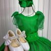 Confeccionado em tecido misto possui forro em poliéster e algodão para não incomodar a criança e proporcionando um caimento incrível e sofisticado, possui gola redonda,renda de flores e apliques de strass no peito, comprimento médio, mangas curtas, possui elástico nas costas para melhor ajuste, acabamento com lindo laço na parte posterior do vestido completa o look dos sonhos!