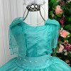 Vestido Marie Longo Mel – Verde Tiffany O Vestido Marie Longo Mel na elegante cor Verde Tiffany é a escolha perfeita para ocasiões especiais como casamentos, formaturas e eventos de florista. Um modelo encantador que une sofisticação e conforto para transformar qualquer momento em um sonho. ✨ Destaques do modelo: Tecido: Corpo em Tecnosport 100% Poliéster e babados em tule 100% poliamida, garantindo caimento impecável e visual refinado. Forro: 100% Poliéster, oferecendo maciez e evitando desconfortos. Detalhes luxuosos: Peito com pérolas e nervuras (podendo variar conforme o lote) e delicado tule pipoquinha. Modelagem perfeita: Gola redonda, mangas curtas, comprimento longo, elástico nas costas para melhor ajuste e laço posterior que completa o look com charme. ???? Dica de uso:Para um visual ainda mais volumoso e majestoso, utilize um saiote ou anágua de armação (vendidos separadamente na categoria Acessórios). ???? Observações importantes: Tiara e calçados vendidos separadamente (disponíveis em nosso site nas categorias Acessórios e Calçados). As medidas podem variar em até 4 cm. Pode haver variação de tonalidade do produto de acordo com a tela do dispositivo. ???? Indicado para: Floristas, daminhas, festas de formatura e eventos que pedem um toque de elegância e delicadeza.