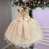 Coleção Mariely – Vestido Infantil  O vestido Mariely é a definição de elegância clássica com um toque moderno. Uma peça imponente, pensada para quem quer um visual marcante, sofisticado e absolutamente encantador desde o primeiro olhar. Detalhes que fazem a diferença• Busto estruturado com costuras geométricas e delicadas aplicações de pérolas, trazendo textura e requinte.• Alças delicadas para amarrar nos ombros, permitindo ajuste perfeito e um charme extra ao visual.• Cintura com faixa em brilho sutil, valorizando o caimento e destacando a silhueta.• Saia ampla em tule com várias camadas, volumosa, leve e com movimento impecável.Perfeito paraFestas de aniversário, daminhas, casamentos, formaturas infantis, ensaios fotográficos e ocasiões em que o verde profundo transmite elegância e presença.   Coleção MarielyPara meninas que gostam de brilhar com delicadeza, estilo e um toque de sofisticação atemporal.   Informações Importantes  As medidas podem variar em até 2cm. Recomendamos sempre consultar a tabela de medidas antes da compra para evitar erros.  Tecido 100% poliester Para um volume extra, indicamos o uso de saiote de armação, vendido separadamente na categoria Acessórios. Tiara e outros acessórios não acompanham o produto, mas estão disponíveis em nosso site. Calçado vendido separadamente, disponível na categoria Calçados As cores do produto podem sofrer variações de tonalidade conforme a configuração da tela do seu dispositivo.