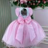 Confeccionado em tecido misto possui forro em poliéster e algodão para não machucar a criança e proporcionando um caimento incrível e sofisticado, possui gola redonda, comprimento médio, possui elástico nas costas para melhor ajuste, acabamento com lindo laço na parte posterior do vestido completa o look dos sonhos!