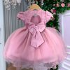 Confeccionado em tecido misto possui forro em poliéster e algodão para não incomodar a criança e proporcionando um caimento incrível e sofisticado, possui gola redonda, comprimento médio, mangas curtas, possui elástico nas costas para melhor ajuste, acabamento com lindo laço na parte posterior do vestido completa o look dos sonhos!