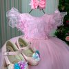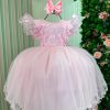 Confeccionado em tecido misto possui forro em poliéster e algodão para não incomodar a criança e proporcionando um caimento incrível e sofisticado, possui gola redonda, comprimento médio, mangas curtas, possui elástico nas costas para melhor ajuste, acabamento com lindo laço na parte posterior do vestido completa o look dos sonhos!
