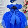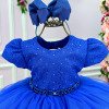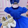 Vestido Menina Bonita Azul Royal Peito Rendado