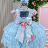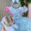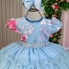 Confeccionado em tecido misto possui forro em poliéster e algodão para não incomodar a criança e proporcionando um caimento incrível e sofisticado, possui gola redonda, comprimento médio, mangas curtas, possui elástico nas costas para melhor ajuste, acabamento com lindo laço na parte posterior do vestido completa o look dos sonho