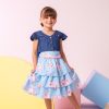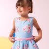 Confeccionado em tecido misto possui forro em poliéster e algodão para não incomodar a criança e proporcionando um caimento incrível e sofisticado, possui gola redonda, comprimento médio, mangas curtas, possui elástico nas costas para melhor ajuste, acabamento com lindo laço na parte posterior do vestido completa o look dos sonhos!