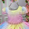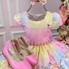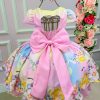 Confeccionado em tecido misto possui forro em poliéster e algodão para não incomodar a criança e proporcionando um caimento incrível e sofisticado, possui gola redonda, comprimento médio, mangas curtas, possui elástico nas costas para melhor ajuste, acabamento com lindo laço na parte posterior do vestido completa o look dos sonhos!
